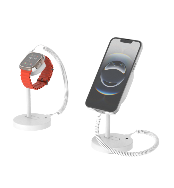 MagStand は、InVueの Qi2 マグネットチャージャーで充電とセキュリティの両方を提供する、小売店向けの携帯電話およびウェアラブルディスプレイ用に設計されています。Qi2 および MagSafe デバイスに対応しています。